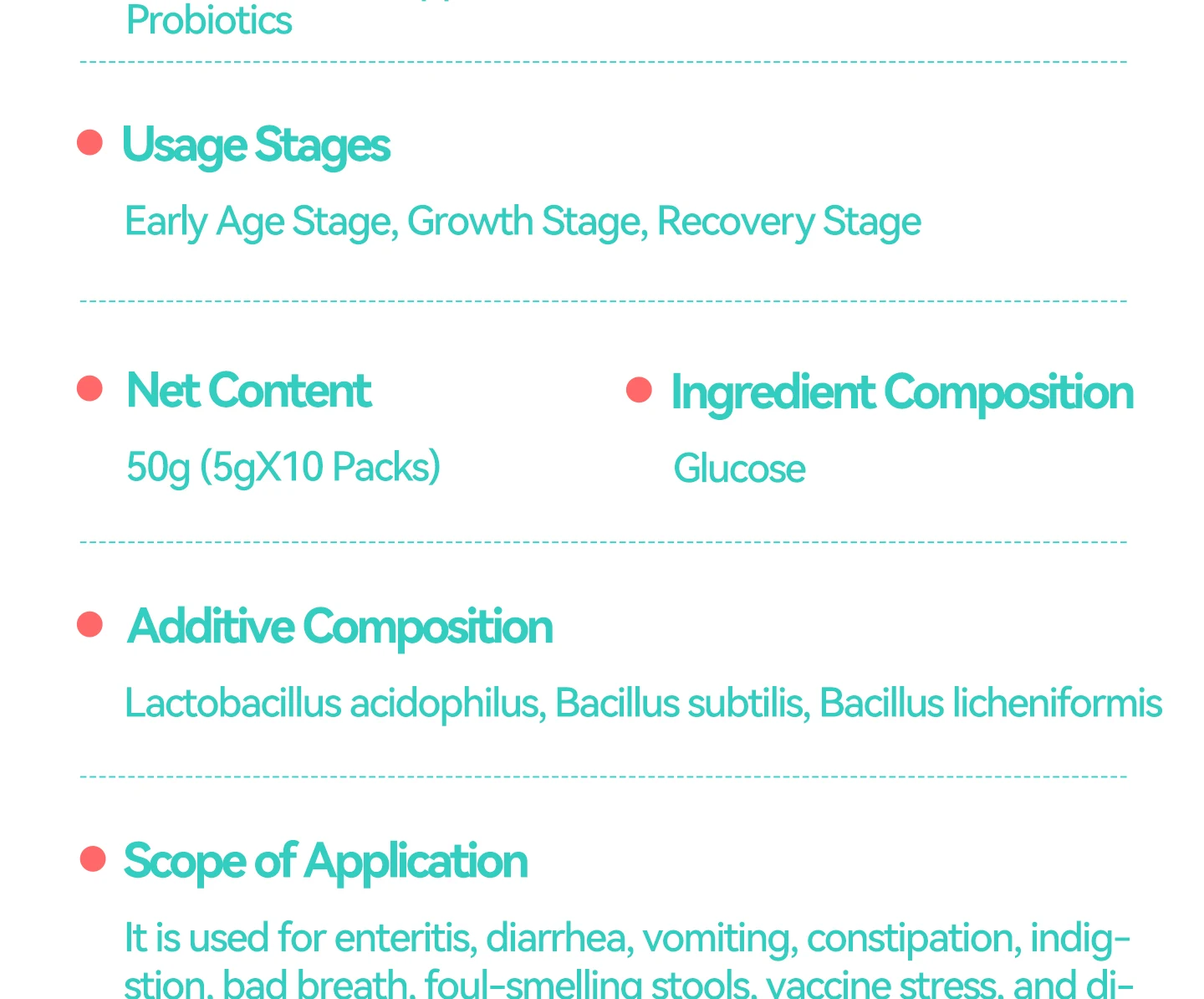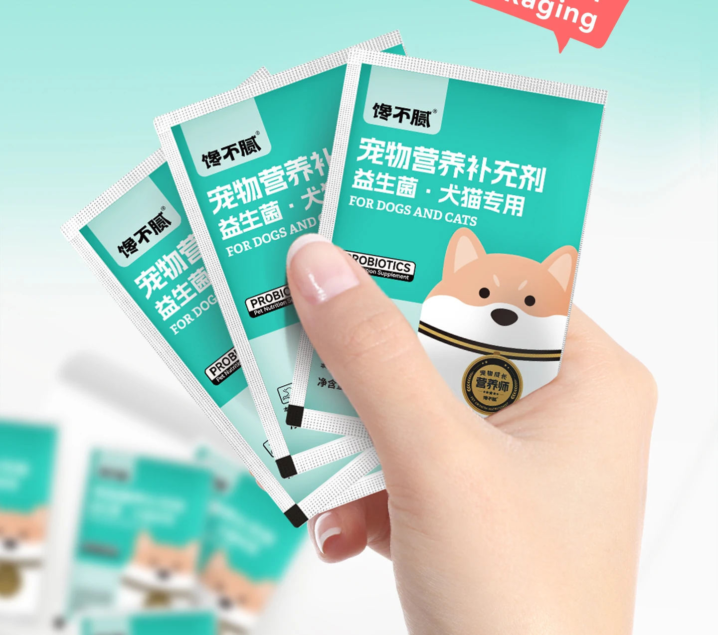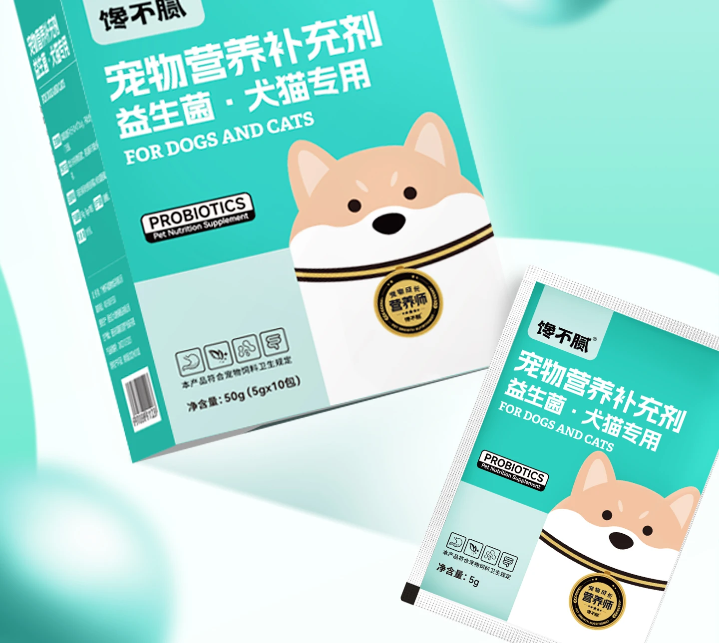 Pet probiotics improve the intestines, the powdered texture is easy to eat, and the three major probiotics care for the intestinal health of pets, and the independent small packaging rejects secondary pollution one pack at a time. Mixed food feeding dogs and cats is universal