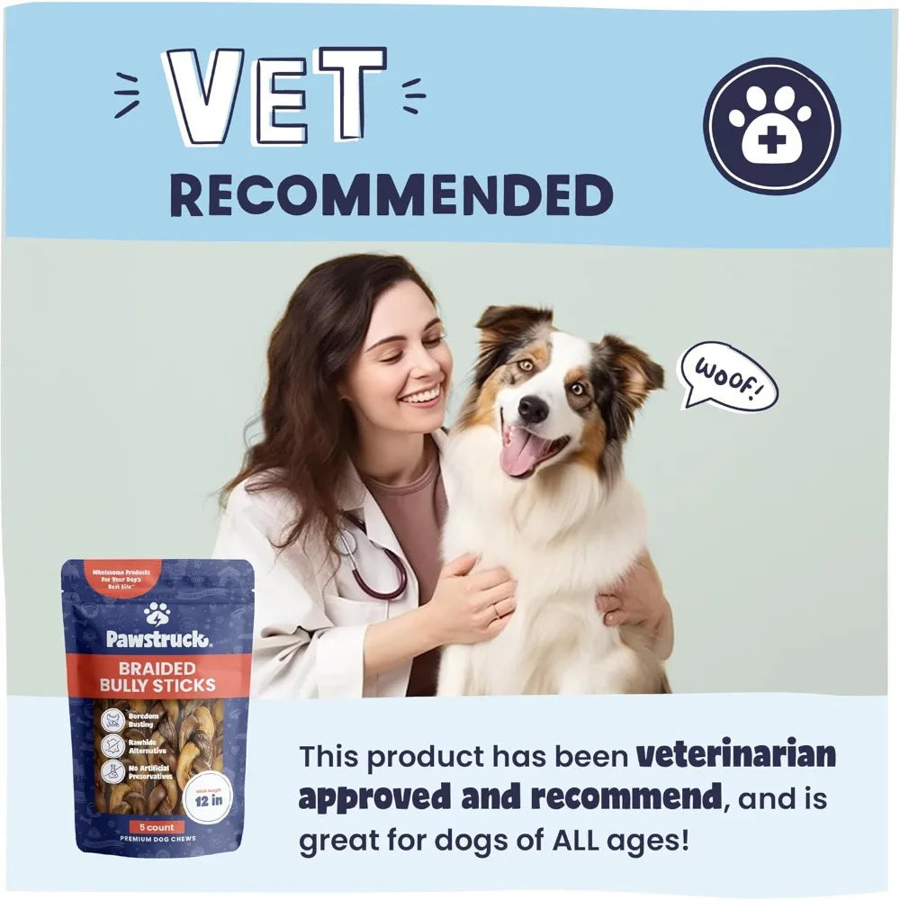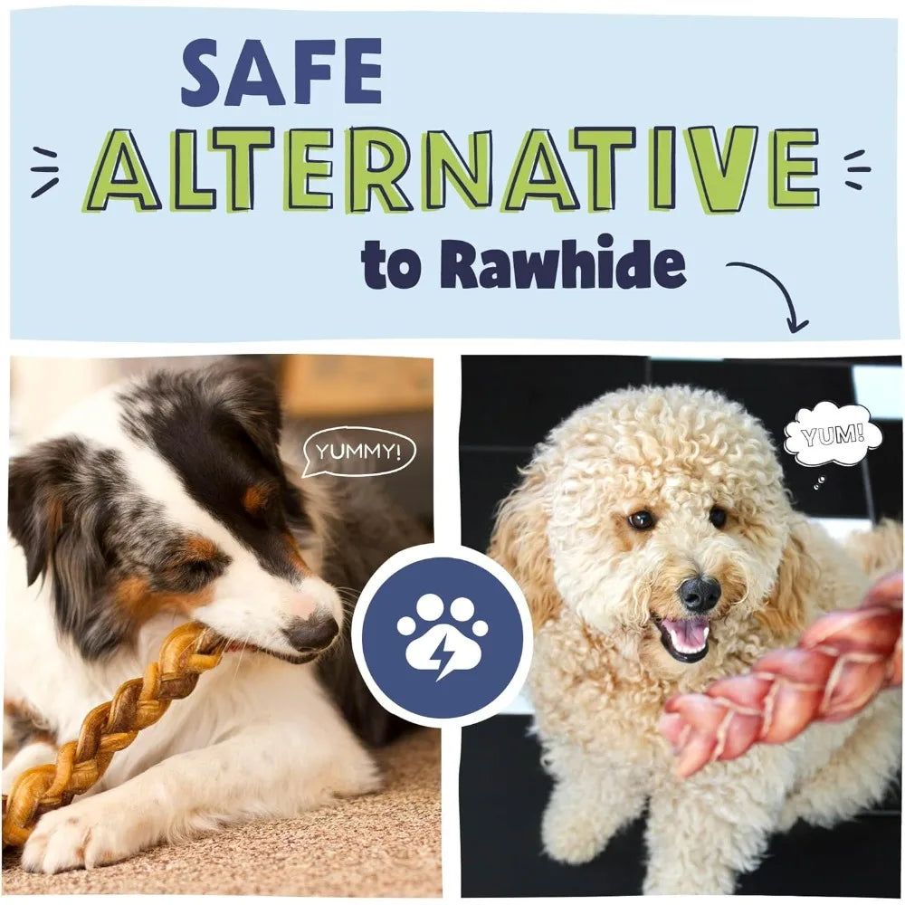 Natural 12" Braided Bully Sticks for Dogs – Tough, Long-Lasting, Rawhide-Free, Low-Odor, Single Ingredient Chew Treat
