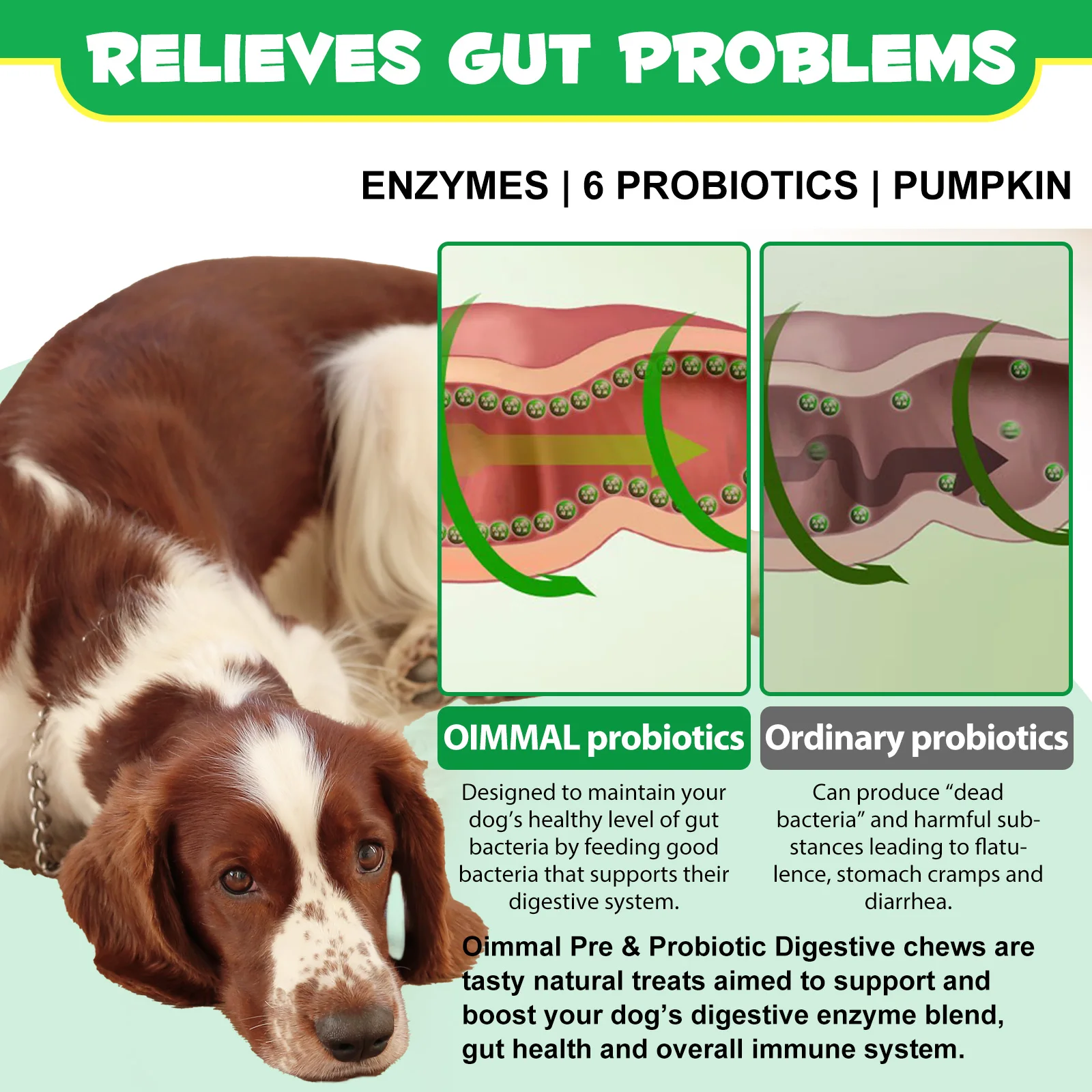 Pre Probiotics for Dogs Support Gut Health Itchy Skin Allergies Yeast Balance Immunity Probiotics and Digestive Enzymes 60 Chews